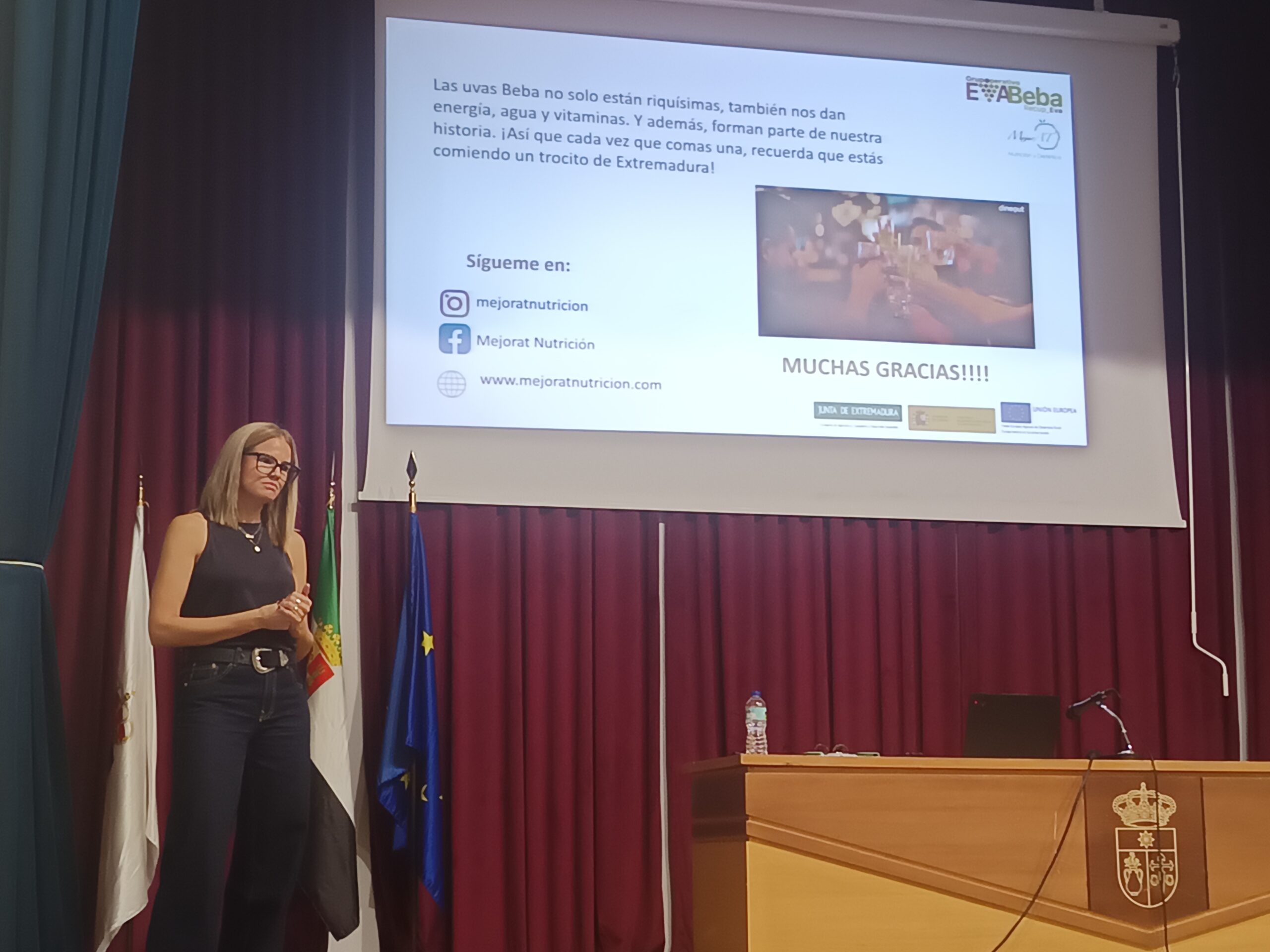 La tarde comenzó con la sesión formativa “La uva Eva: Nutrición, sabor y tradición en una sola fruta”, impartida por la nutricionista Ana Tortonda Flores, de MejorAT Nutrición, donde se explicaron los beneficios nutricionales de esta variedad de fruto y su papel dentro de una dieta equilibrada. Especial interés generaron las diversas recetas propuestas por Ana, donde los asistentes también compartieron recetas locales con presencia de la uva Eva.